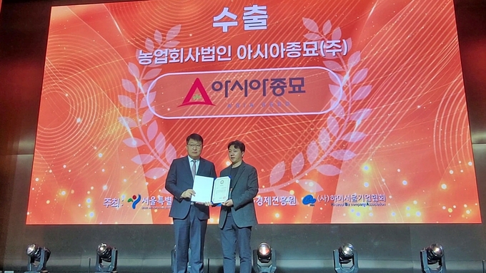 농업회사법인 아시아종묘(주)는 이달 23일 열린 ‘2025 하이서울기업 페스티벌’에서 수출부문 표창을 받았다. 서울 코엑스 마곡에서 서울시와 서울경제진흥원 등이 주최한 이번 행사는 올 한해 각 분야에서 혁신적 성과를 낸 유망 기업들을 격려하고 성과를 공유했다.