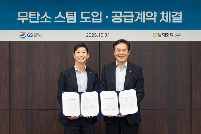 남해화학(대표이사 김창수)과 GS칼텍스가 지난달 31일 서울 GS칼텍스 본사에서 ‘무탄소 스팀(Carbon-free Steam) 도입·공급사업 계약’을 체결했다.