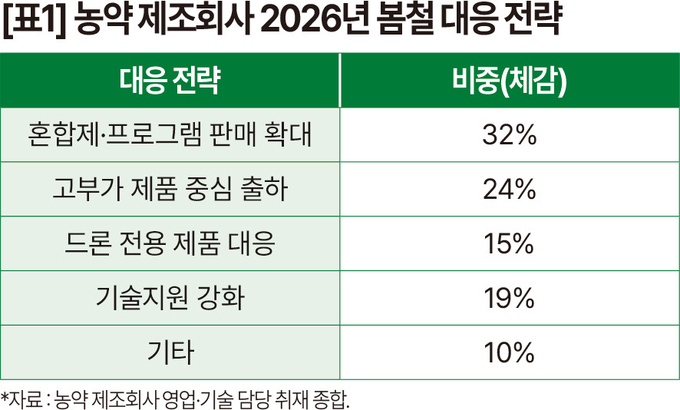 제조회사는 프로그램 제안과 고부가 전략으로, 유통은 회전율 관리와 가격 유지로 대응하고 있다는 해석이다. 결국 초기방제 시장을 얼마나 선점하느냐, 그리고 재고·가격·프로그램 전략을 얼마나 정교하게 운용하느냐가 2026년 연간 농약시장의 성패를 가르는 기준이 될 전망이다.