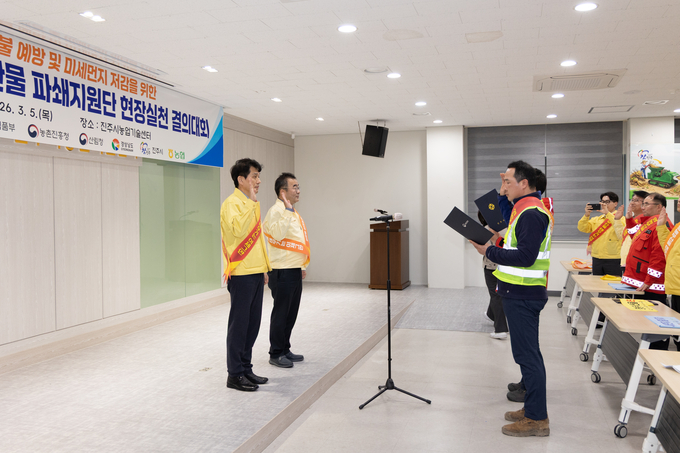 농촌진흥청(청장 이승돈)이 ‘봄철 산불 조심 주간(3.1.∼3.7.)’을 맞아 이달 5일 경남 진주시농업기술센터에서 ‘영농부산물 파쇄지원단 현장 실천 결의 및 안전 처리 캠페인’을 개최했다.
