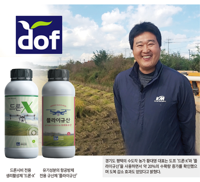 황 대표는 ‘드론-X’와 ‘플라이규산’의 실제 효과를 체감한 만큼 타 농가에도 적극적으로 추천하고 있다. 올해는 도프의 다른 제품도 추가로 사용해 이상기후에 대응하는 정밀한 수도작 솔루션을 확보하겠다고 밝혔다.