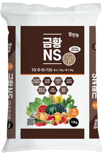 국내 유일의 황질소 비료로 1g당 50μm(마이크로미터) 크기의 미세 유황 입자가 약 2억 개 들어 있다. 물에 잘 녹고 미생물에 의해 빠르게 이온화되어 작물에 신속하게 흡수되고, 효과가 오래 지속돼 수확량 증대 효과도 우수하다. ‘금황NS’를 사용하면 수확기까지 질소질 비료 총 사용량을 줄이고 생리장해나 토양 산성화 우려도 낮출 수 있다.