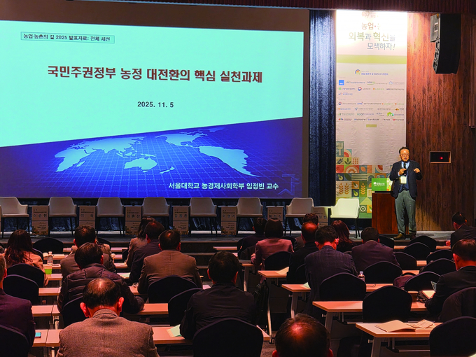 이달 5일 aT센터에서 GSnJ 인스티튜트 주관으로 열린 ‘농업·농촌의 길 2025’ ‘농업·농촌의 회복과 혁신을 모색하자!’ 심포지엄에서다. 행사의 시작은 다소 무겁고 진중했다. 故 이정환 박사가 걸어온 길이자 정신이 녹아 있는 행사이기 때문이다.