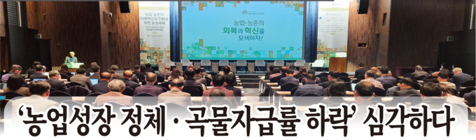 두 번째 해결과제로는 지속 감소추세인 ‘식량자급률의 하락’이다. OECD 국가 중 최하위 수준으로 식량(곡물) 가운데 80% 가량을 해외에서 조달 중이다. 세계 7위권 대규모 식량 수입국이면서 곡물자급률이 22%에 불과하며 낮은 자급률과 특정국에 대한 높은 수입의존성 등으로 식량가격 등락의 충격에 고스란히 노출되어 있어 식량안보에 매우 취약한 상태라고 진단하고 국내 생산능력 제고 필요성을 강하게 제기했다.