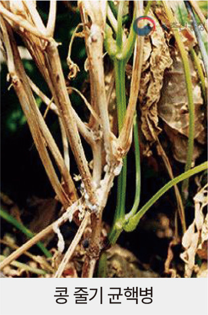 증상설명=주로 줄기의 마디 부위나 꼬투리에서 발생하나, 꽃잎이 떨어져 붙어 있는 잎과 줄기에서도 발생한다. 식물체의 감염부위는 수침상으로 변하고, 병이 진전되면 회백색 내지 회갈색의 병반이 형성되어 감염부위를 중심으로 위 아래로 확대된다. 병든 부위는 마른 상태로 썩고, 그 외부 및 내부에 부정형의 검은 균핵이 형성된다. 감염된 줄기의 지상부는 시들고, 말라 죽는다. 이 병은 국내의 두류작물 중에서 콩과 강낭콩에서 발생하는 것으로 보고되어 있다.