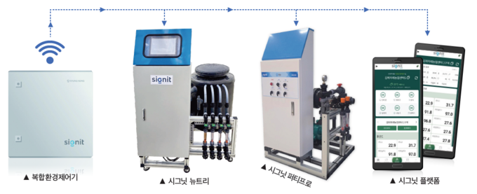 ‘시그닛 복합환경제어기’는 온도·습도·이산화탄소(CO₂)·광량 등 작물 생육에 필요한 환경 요소를 정밀 제어하고, 양액기와 연동해 급액 관리 자동화를 구현한다. ‘시그닛 포그닛(FoGnit)’은 에어포그 기반의 초미립자 분무 기술을 활용해 무인 방제는 물론 온·습도 조절과 악취 저감 기능을 동시에 수행함으로써 노동력 절감과 생산성 향상에 기여할 수 있다. 이번 사업에는 에어포그 기술이 포함된다. 또한 현지 기술자와 농업인을 대상으로 한 스마트팜 제어 및 재배 관리 교육 프로그램 운영으로 기술적인 자립도 지원할 예정이다.