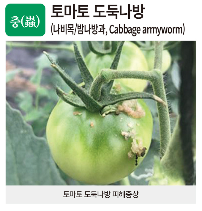 작물별 병해충 및 잡초에 대한 세부 설명과 사진을 활용한 이해를 통해 올바른 적기 방제에 도움을 주기 위한 연재 「방제도감-병충초(病蟲草) 바로알기!」 스물여섯 번째 코너. 이번 호에서는 토마토 잎마름역병과 나비목/밤나방과 해충인 도둑나방, 포도과 잡초인 담쟁이덩굴에 대해 알아본다. 농촌진흥청이 신속한 조기경보와 대응으로 농작물 피해를 줄이고자 운영하는 ‘국가농작물병해충관리시스템((NCPMS)’ 중 농작물에 대한 다양한 병해충 정보를 제공하고 있는 ‘병해충별 도감정보’ 자료를 인용했다.