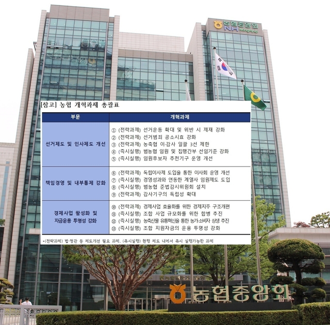 위원회는 농협 본연의 역할인 농업인 지원 강화를 위해 경제사업 구조 개선과 자금 운용 투명성 강화도 필요하다고 판단했다.