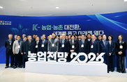 ‘K-농업·농촌 대전환, 세계를 품고 미래를 열다’라는 대주제 아래 한국농촌경제연구원(원장 한두봉, 이하 KREI)이 개최한 제29회 ‘농업전망 2026’이 농업계의 뜨거운 관심 속에 열렸다. KREI가 주관하고 농림축산식품부(장관 송미령)가 후원하여 지난달 22일 잠실 롯데호텔 월드(서울)에서 개최된 이번 행사는 기후위기와 지정학적 리스크 등 다중위기 시대를 극복하기 위한 우리 농업의 현재와 미래를 다각도로 조명했다. 한두봉 KREI 원장은 개회사를 통해 “우리 농업·농촌이 국가전략산업으로 자리매김하기 위해서는 환경 변화에 선제적으로 대응하는 대전환이 필요하다”며 “이번 행사에서 논의되는 내용들이 농민과 정책 입안자들의 합리적인 의사결정을 돕는 이정표가 되기를 기대한다”고 전했다. KREI는 우리 농정이 집중해야 할 핵심 의제들을 심도 있게 다루기 위해 제1부 ‘농정 방향과 한국 농업·농촌의 미래’, 제2부 ‘2026년 농정이슈’, 제3부 ‘산업별 이슈와 전망’ 등 총 3부로 나누어 행사를 진행했다. 제1부에서는 이한주 경제·인문사회연구회 이사장이 ‘이재명 정부 국가비전과 농업·농촌’이라는 주제로 기조강연 후, 김용렬 KREI 농업관측센터장이 ‘2026년